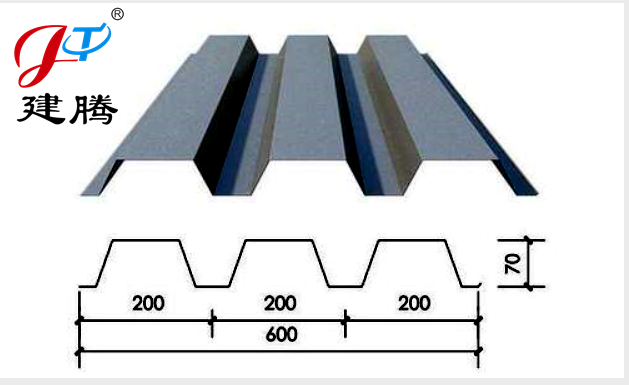 效寬度為600mm,是開(kāi)口型壓型鋼板的一款型號(hào)規(guī)格,中構(gòu)新材生產(chǎn)的YX70-200-600壓型鋼板波高為70mm,由三個(gè)波組成,每個(gè)波距為200mm,原材料主要使用唐鋼、首鋼、鞍鋼等廠家材質(zhì)。